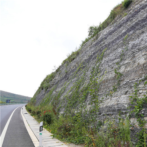 產(chǎn)品主要由菱形鋼絲繩網(wǎng)、環(huán)網(wǎng)和高強(qiáng)鋼絲網(wǎng)組成。邊坡防護(hù)網(wǎng)可分為兩大系統(tǒng):覆蓋或包裹邊坡或巖石的主動(dòng)防護(hù)系統(tǒng)和阻止邊坡上滾落巖石的被動(dòng)防護(hù)系統(tǒng)。它能預(yù)防斜坡上的各種地質(zhì)災(zāi)害和跳雪、沖刷岸坡、飛瀑飛石、墜物等災(zāi)害的全防護(hù)體系。